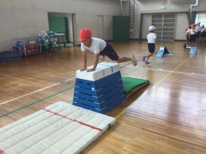 3年生の体育では、跳び箱の学習を行なっています。