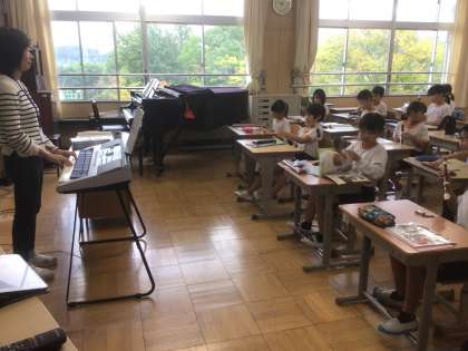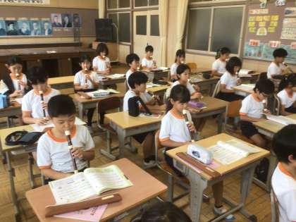 3年生の音楽では、リコーダーを使ってソ〜高いレの練習をしています。