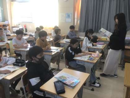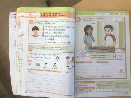 5年生の外国語では、道案内の仕方を学習しています。