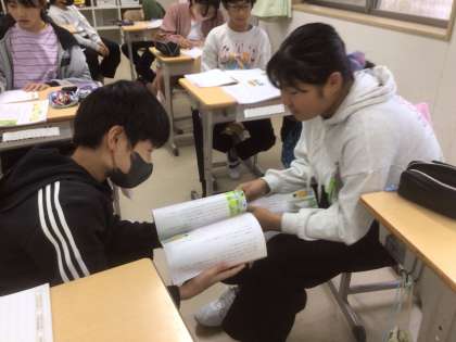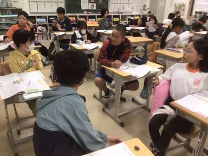 最初、相手の事を悪く思っていた主人公の思いが、がらりと変わった場面から、主人公が気付いた思いについて考え合いました。