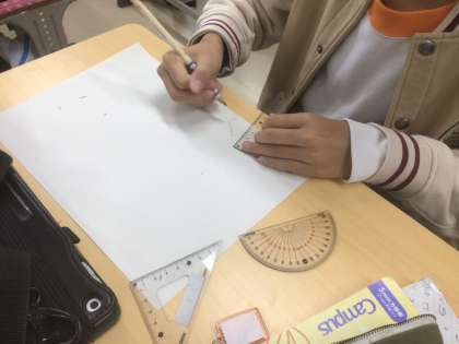 10/31の授業では、教科書に示された四角形と同じ大きさの四角形を、定規やコンパスを使って描きました。