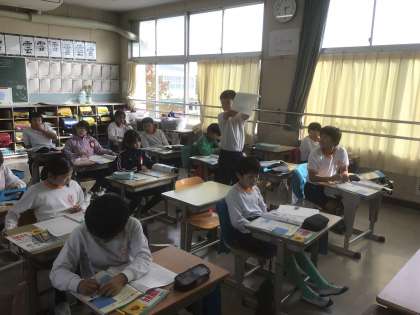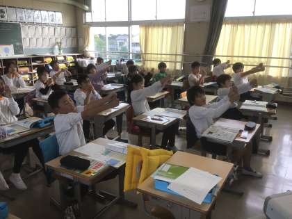 11/4の授業では、月を観察した時の、月の高さの調べ方を学びました。体の前で握りこぶしを作り、握りこぶし1つ分で高さ約10度、3つ分だと高さ30度である事を知りました。
