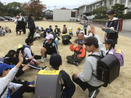後期はじめてのミニ通学団会を行いました。伊保小学校では、毎月1回ミニ通学団会を行い、自分たちの通学の様子を振り返っています。