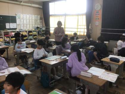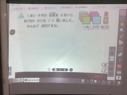 11/10の授業では、教科書の文章題を読んで式を考えました。2つの式を立てて、順番に解いていきました。