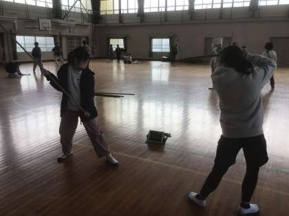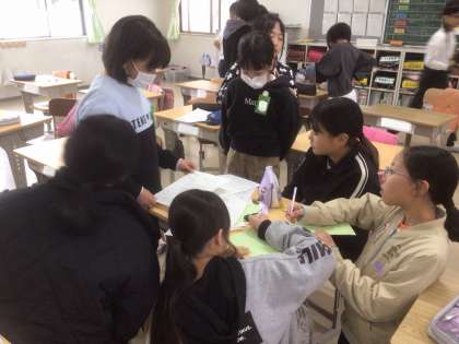 11/12の総合的な学習の時間では、発表する内容をグループごとに集まって、練っていました。棒の手グループは、6月に教えていただいた演舞の動画を見ながら、練習を積んでいました。