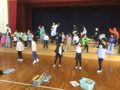 11/14に、2年生は体育館で学年発表会の練習をしました。