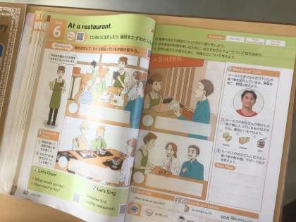 5年生の外国語では、「at a restaurant 」を学習しています。