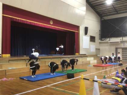 5年生は、体育で学んだ事を発表しました。ボール、マット、手旗と盛りだくさんでした。