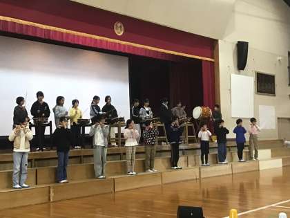 6年生は、総合的な学習の時間に学んだ伝統芸能について、発表しました。和楽器を見事に演奏していました。