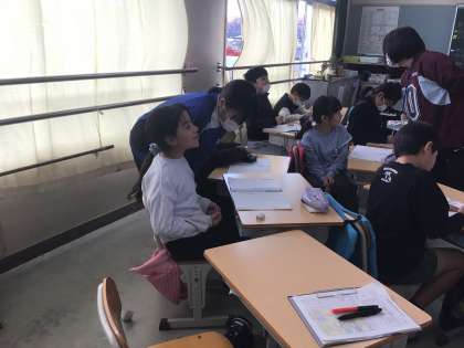 本校でも二人の中学生を受け入れ、1年生教室、3年生教室で児童の授業の支援を体験してもらっています。児童の目線に合わせてかがみながら、丁寧に児童の支援を行う中学生の姿がありました。