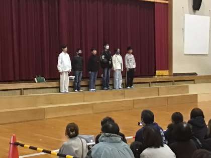 学年発表会の最初に、6年生がテーマ発表を行いました。
