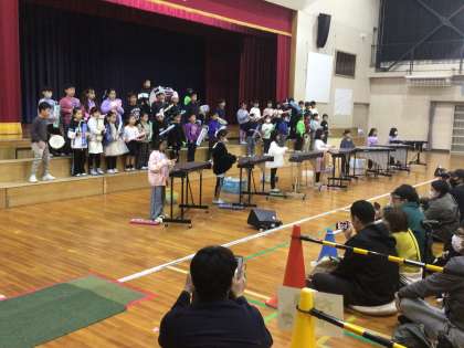 1曲目は「山のポルカ」(日本)、2曲目はバンブーダンス「ティニクリン」(フィリピン)、3曲目はフォークダンス「エース オブ ダイヤモンド」(デンマーク)、4曲目はエイサー「とーしん ドーイ」(日本)、5曲目は合奏「かぼちゃ」(日本)という発表でした。