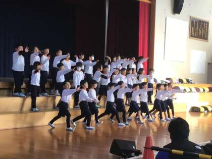 プログラム3は、1年生の発表「ドキドキワクワク小学校」でした。1年生の学校での1日を表現しました。