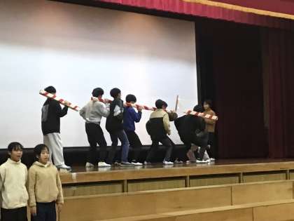 最後に「御殿万歳」。これは児童が12月に学習するため、過去の映像を見ながら、調べたことを発表しました。