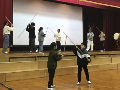 2つ目は「棒の手」。太刀と棒をそれぞれ持った二人一組で演舞を披露しました。