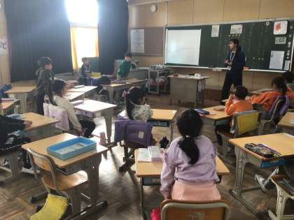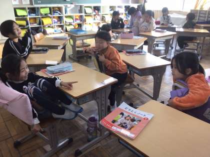 12/2の、1年生の道徳では、「がっこうのかえりみち」という教材を使って、なぜ親切にするといい気持ちになるのかを考えました。