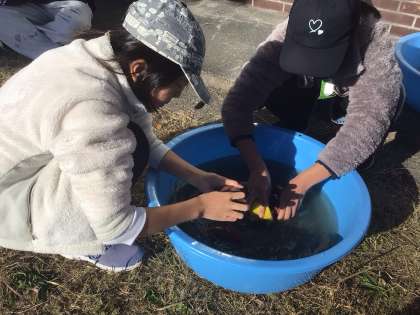 今年は、サツマイモパーティーを12/19に行うことになり、12/15から、6年生がサツマイモを洗って、サツマイモパーティーの準備が始まりました。6年生児童は、1つ1つ丁寧にサツマイモの表面についた土を落としていきました。