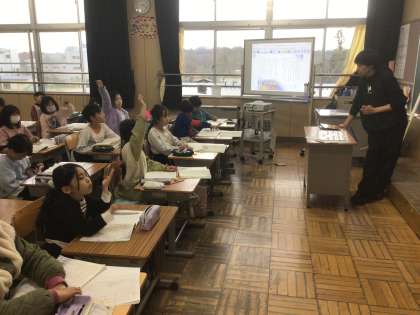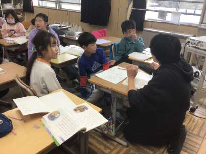 12/17の授業では、児童がお話の情景を表す言葉として、「雪がじぞうさまにくっついている」と発言しました。これはどういう事なのか、近くの友達と話し合いました。