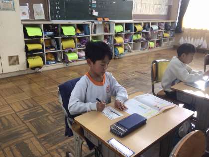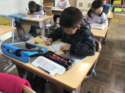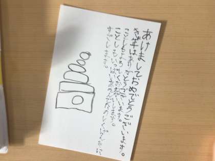 郵便局からいただいた年賀状に、干支や鏡餅などのイラストを書き、新年のあいさつを書きました。