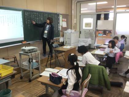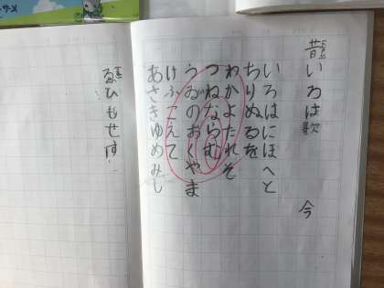 1/13の授業では、教科書に載っているいろは歌を学習しました。児童は、昔の子どもたちがいろは歌を使って文字を覚えていたことを知りました。児童はノートに丁寧にいろは歌を書いてみました。書けたら全員で声を合わせて読んでみました。