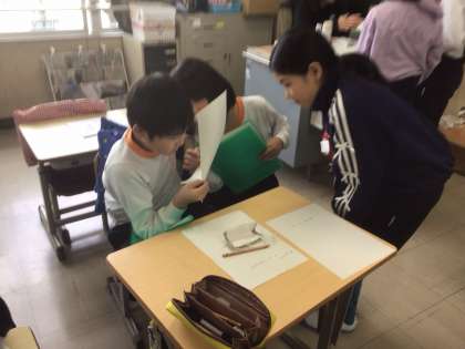 1/13の授業では、グループごとにSDGsの調べる分野を決め、自分が出来ることを考えました。「6 安全な水」グループは、「蛇口をこまめにしめる」、「2 飢餓をなくす」グループは、「食べ残しをなくす」など、自分たちで取り組めることを考え合いました。