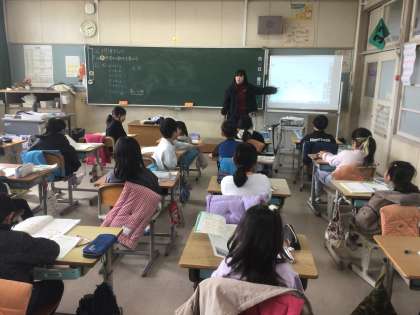 1/14の授業では、「赤の車は2m、黄の車は12m走りました。黄の車が走った長さは、赤の車が走った長さの何倍ですか」という問題に取り組みました。問題文を読んで図を書き、式を考えて答えを求めました。