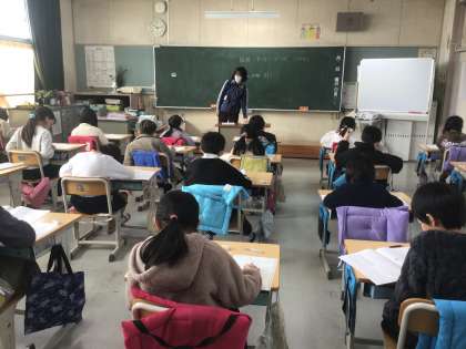 1/15、1/16の2日間(高学年は1/14からの3日間)、学力テストを行なっています。4月からの学習の定着度を確認するためです。児童は、真剣な表情で、取り組んでいました。