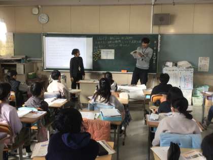 1/22は、外国語の授業で、校内研究授業がありました。最初に児童は、相手の行きたい場所やその理由、そこで何をしたいのかを、英語で聞く方法を学習しました。