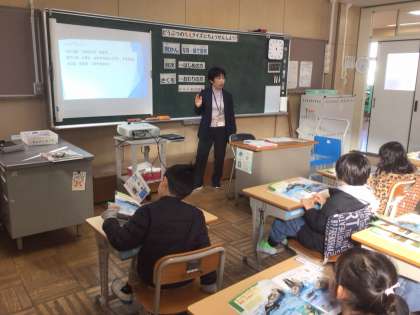 1年生の国語では、豊田市中央図書館から講師をお招きして、図鑑を使った出前授業を行いました。