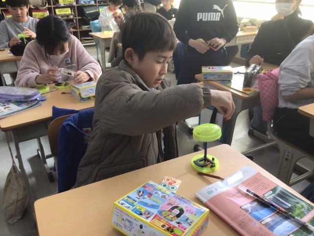 2/3の授業では、磁石キットを使って、磁石遊びをしました。磁石の力で、プラスチックのお皿を触らずに回していました。