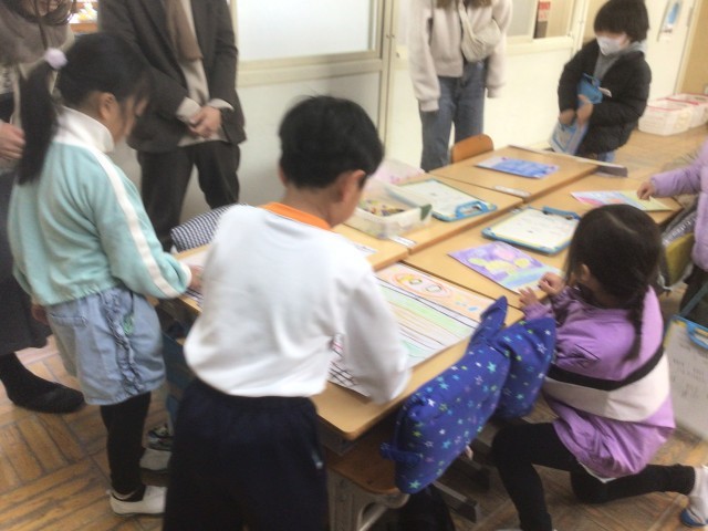 1年生は、生活科で勉強した「むかしあそび」を、保護者のみなさんに紹介し、一緒に遊びました。