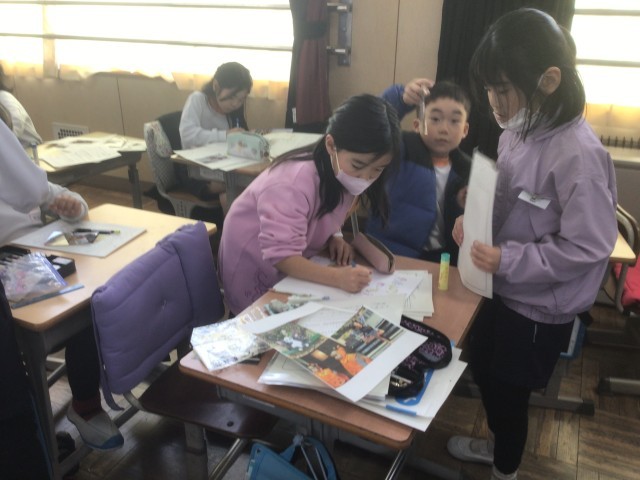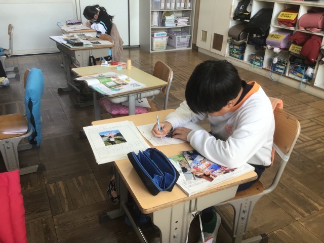2/13の授業では、自分発表会に向けて、生まれてから2年生までの自分を振り返り、自分発見カード作りを進めました。家から思い出の写真を持って来てカードに貼り、説明文を書きました。