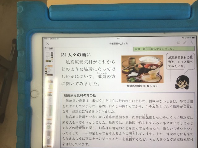 4年生の社会科は、豊田市のことを、副読本「とよた」を使って学習しています。現在の副読本は、学習用タブレットでアクセスして、画面をみて学習します。