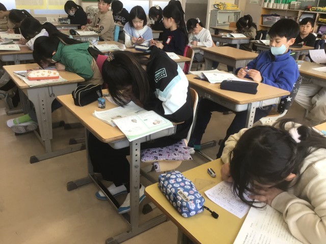 3/17の授業では、実際に10年後の自分に手紙を書きました。「ぼくはパイロットになるという夢をかなえていますか」「一緒に約束した友達と一緒に住んでいますか」「今でもバスケットボールに夢中ですか」など、10年後の自分に思いを馳せて、書いていました。