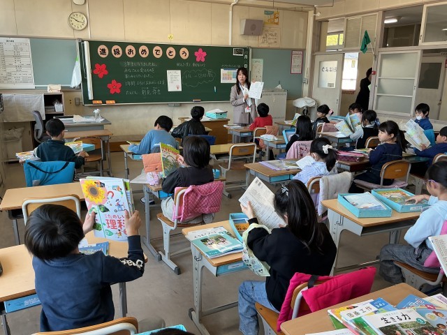 担任が自己紹介をしたり、教科書や書類などを配付したりしました。新しいクラスで、新しい友だちとチームになって、ゲームを行っているクラスもありました。