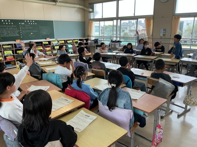 4年生の学級活動では、どのような学級にしたいか考え、発表して話し合いました。それをもとに、合言葉を決めました。