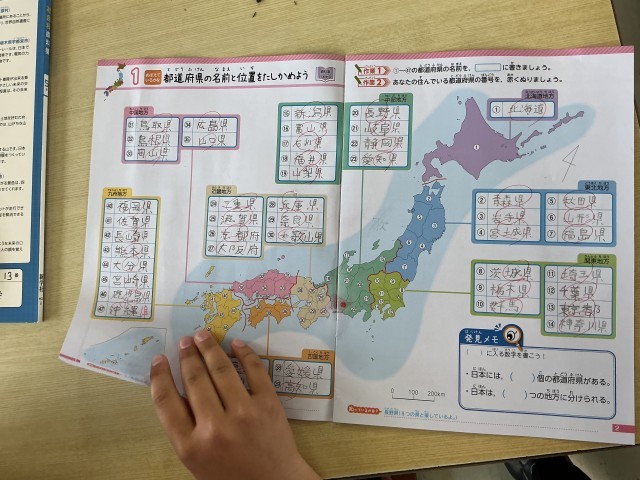5年生の社会科では、4年生で学習した都道府県名について、復習しました。昨年度学習したことをしっかりと覚えており、児童はすらすらと書いていました。