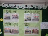 現在、養護教諭の先生がトイレのスリッパの整とんを呼びかけています。保健室前の掲示...