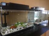 校長室に水槽を設置しました(伊保川に棲む魚を泳がせています)
