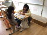 2年生の音楽では、リズム打ちを学習しています。児童は5〜6人の班に分かれて、テ...