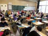 えんぴつプロジェクトで集めた文房具を、お渡ししたよ(4年生)