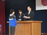 修了証を手渡した後、代表児童のスピーチを聞きました。1年生と4年生は女子、5年生...