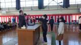 証書授与のあと、校長式辞、教育委員会やPTA代表の方からお言葉や記念品をいただき...