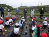 1年生は生活科ではじめての野菜の苗植えを行いました。野菜名人さんが「野菜の苗植え...