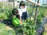毎朝野菜の苗に水をあげているよ(1・2年生)