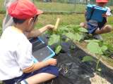 1・2年生が5/1(月)に植えた野菜苗が、児童のお世話によって、すくすくと生長し...