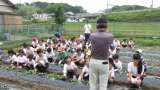1年生と6年生がいっしょにサツマイモ苗の植付(6/11)