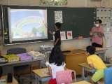3年生の外国語活動では、I like 〜を学習しています。今日は、スクリーンに映...