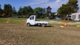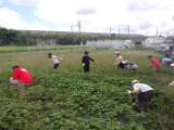 9/22に、地域学校共働本部のみなさんが、運動場にはった芝生を、トラクターで引き...