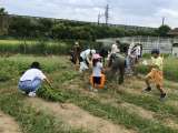 校舎の裏にある学校の畑も、きれいにしました。抜いた野菜の株などを、運び出しまし...
